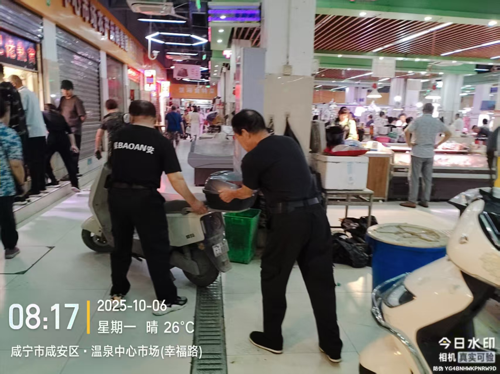 农贸市场人流如梭,工作人员通过加强通道疏导、循环保洁及食品抽检化验,实时响应市民求助,保障市场秩序与食品安全。只为守护市民舒心、安心、放心的菜篮子。