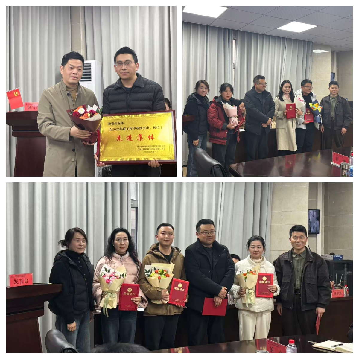 表彰仪式环节,先进集体代表与先进个人依次登台,接受属于他们的荣誉嘉奖,全场掌声雷动。沉甸甸的证书,不仅是对他们过去一年辛勤付出的肯定,更是对全体干部职工踔厉奋发的激励。这一庄重时刻,彰显了自然资源公司“崇尚先进、学习先进、争当先进”的企业文化底色。随后,先进集体代表及先进个人代表先后上台发言,他们分享了在岗位上攻坚克难的宝贵经验,畅谈了与公司同成长、共进步的深刻感悟,朴实的话语中饱含责任与担当,传递出全体员工锐意进取、勇毅前行的精神力量。