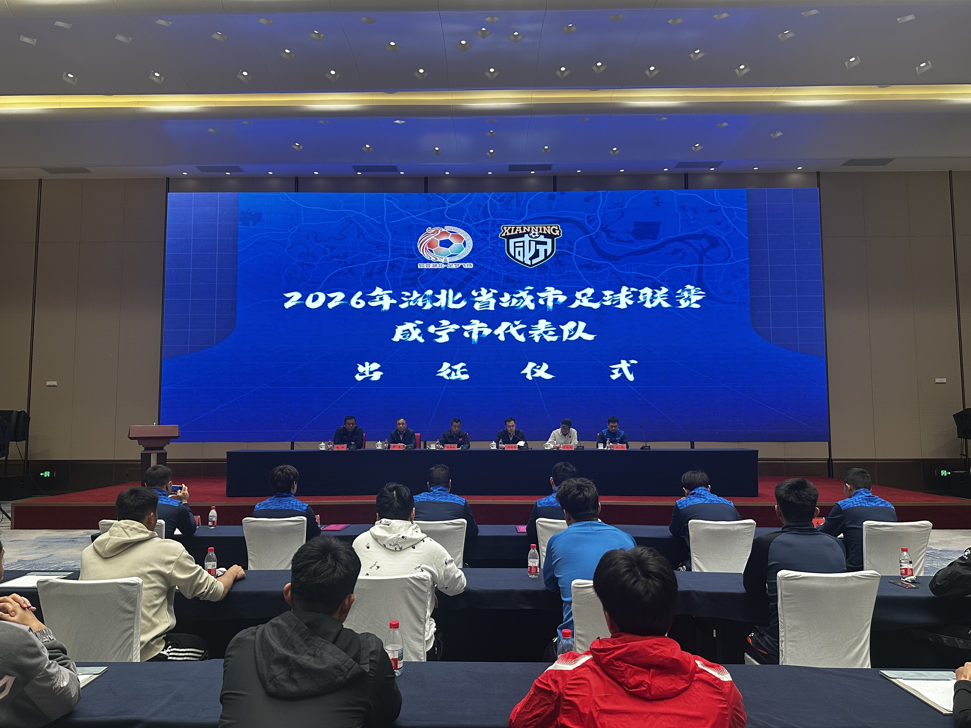 4月3日,2026年湖北省城市足球联赛咸宁市代表队出征动员会在嘉鱼县举行。会议规范完成聘书颁发、队旗授予、动员部署等议程,立标准、强士气、聚合力,全面展现咸宁队昂扬向上的精神风貌,吹响出征楚超的奋进号角。