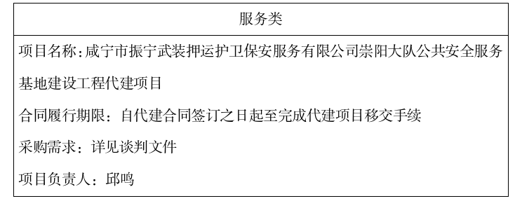 二、项目名称:咸宁市振宁武装押运护卫保安服务有限公司崇阳大队公共安全服务基地建设工程代建项目