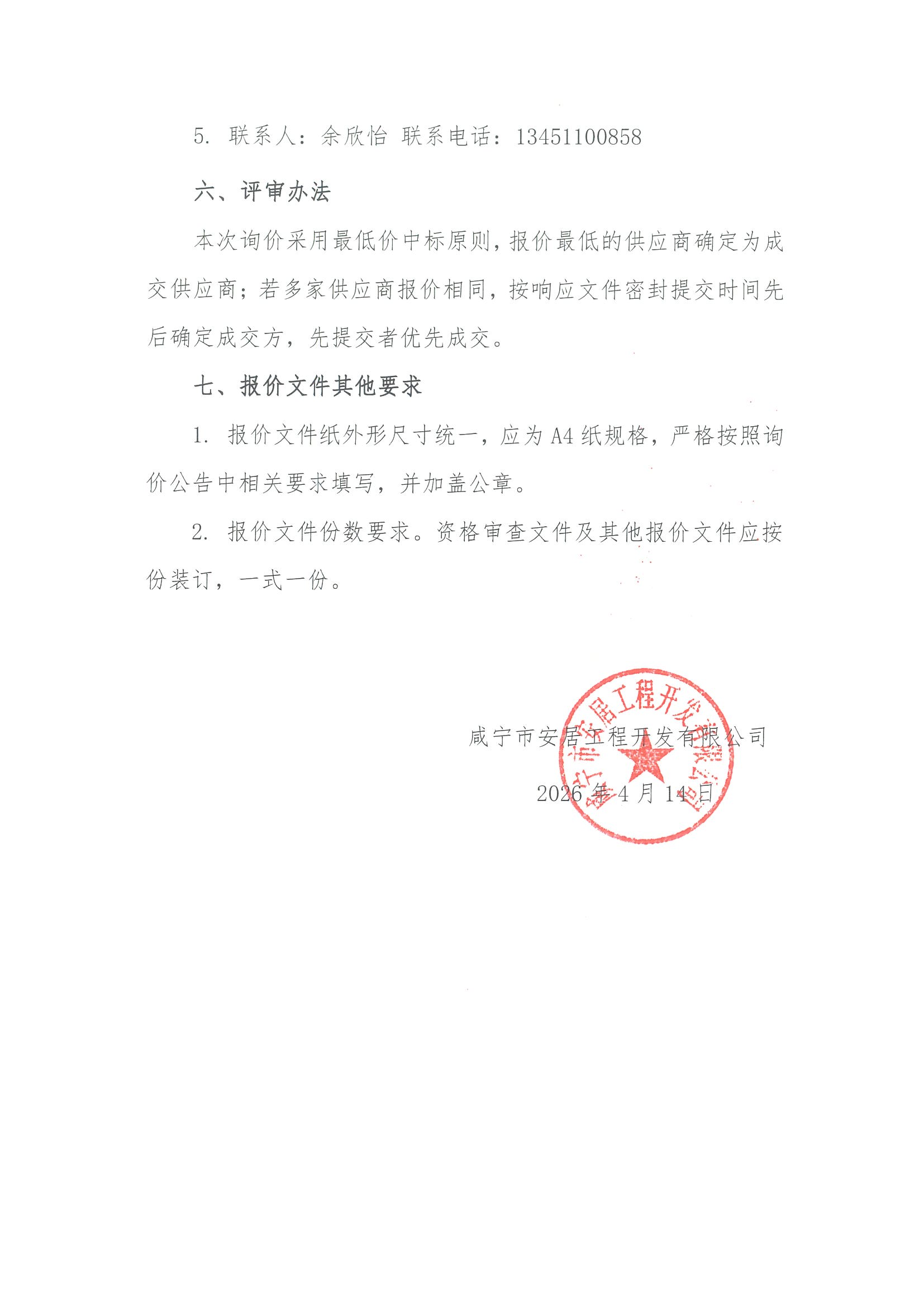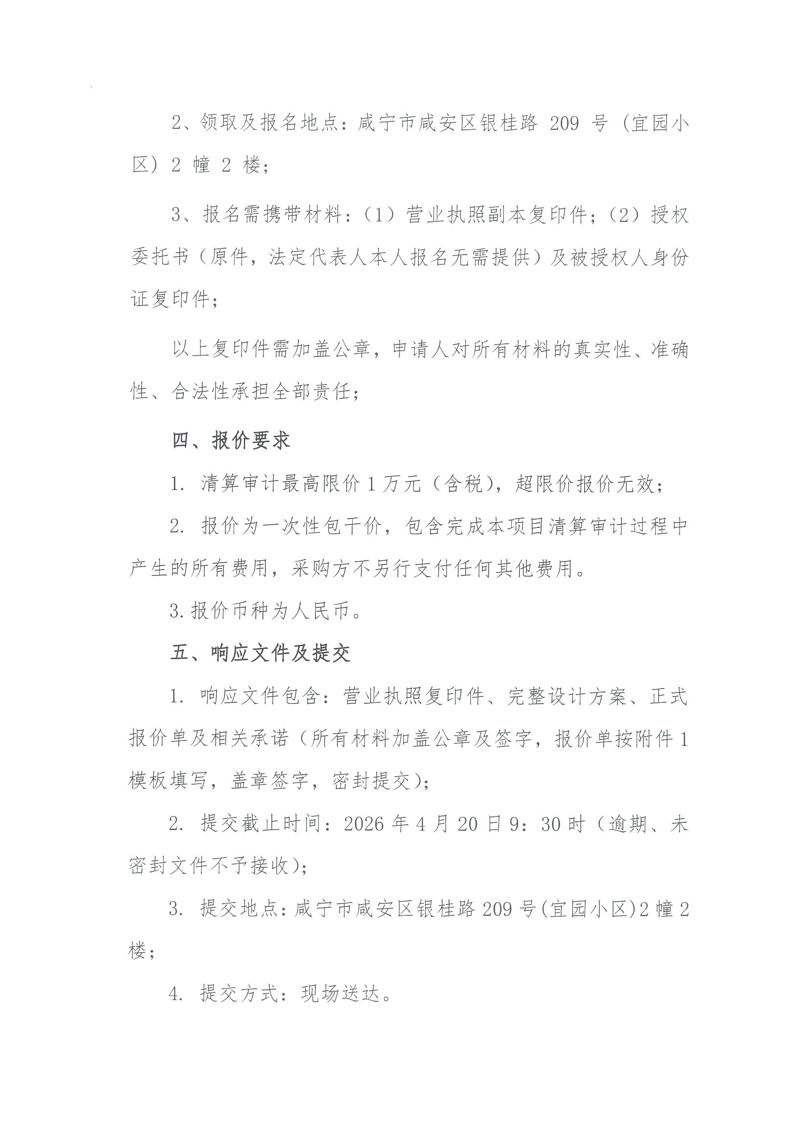 咸宁市安居工程开发有限公司清算审计项目采购方案询价公告