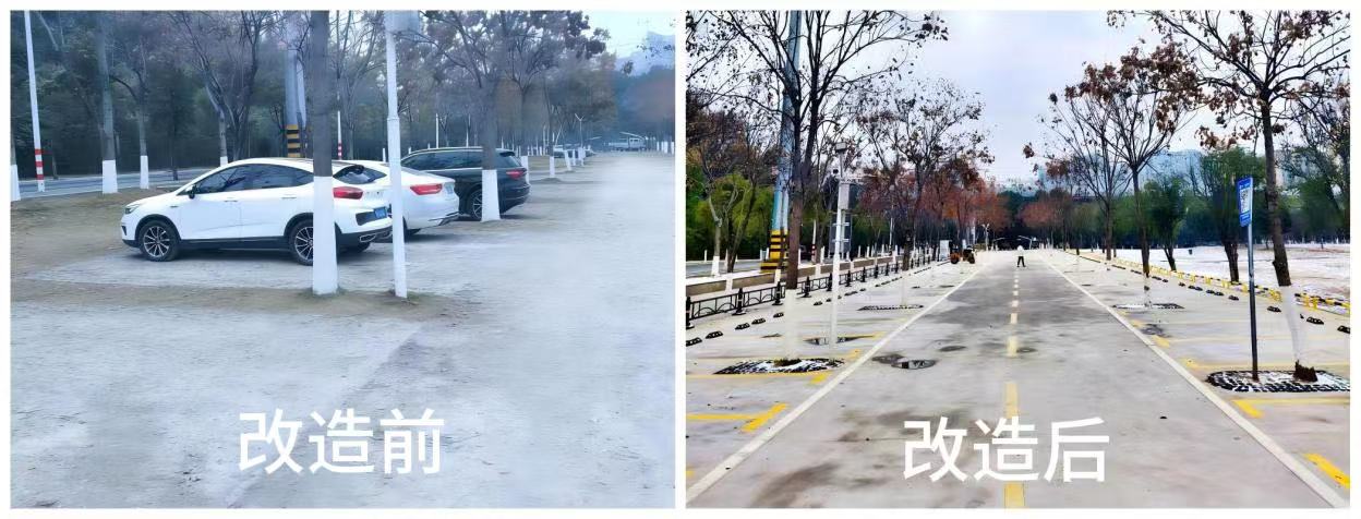 玉泉街停车场是服务十六潭区域的重要停车配套设施,长期承担着市民休闲出游的停车需求。此次改造针对原有场地的突出问题进行了综合整治,重点解决了泥土路面扬尘、坑洼等问题,完成了场地硬化、照明及监控系统安装,并增设了新能源充电桩,实现了“停车+充电”一体化服务,显著改善了停车环境与品质。