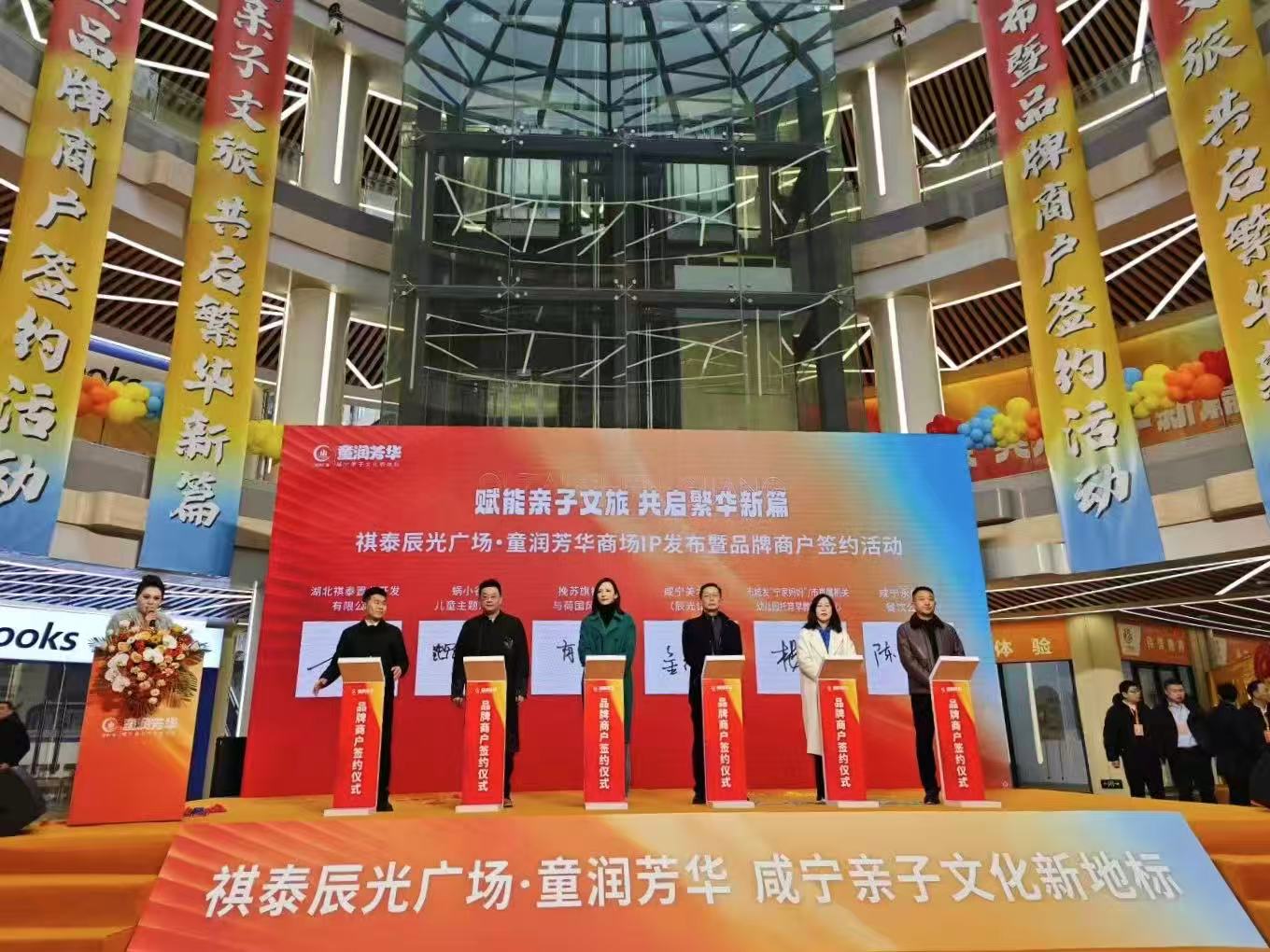 1月25日,咸宁城发集团祺泰公司在温泉祺泰·辰光广场举行“童润芳华商场IP发布暨品牌商户签约活动”,标志着辰光广场・童润芳华商业项目正式启航。活动现场多家优质品牌签约入驻,涵盖宁家妈妈托育早教中心、挽苏旗袍与荷国风馆、蜗小谷儿童主题乐园、户部巷热干面博物馆等多元业态,覆盖教育、艺术、娱乐、餐饮等领域,体现项目“文化+商业”融合的特色定位。活动现场呈现拉丁舞、中国舞等精彩的文艺表演,以生动的艺术形式诠释项目定位,营造浓厚的亲子文化氛围。